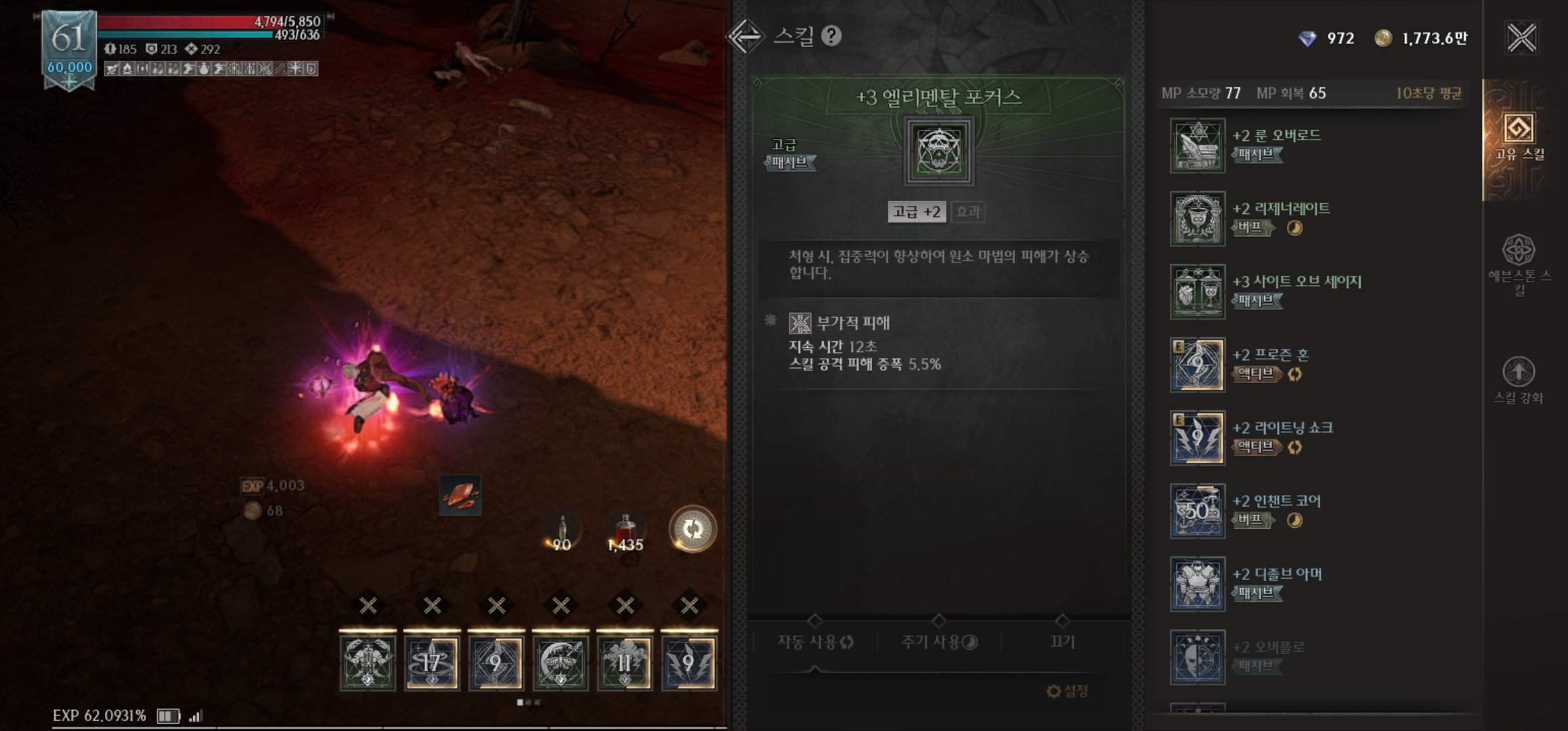 부계인 엘리멘탈리스트도 62렙을 달성한지 꽤 시간이 흘렀고, 얼마나 성장했는지 작성을 해보겠음
