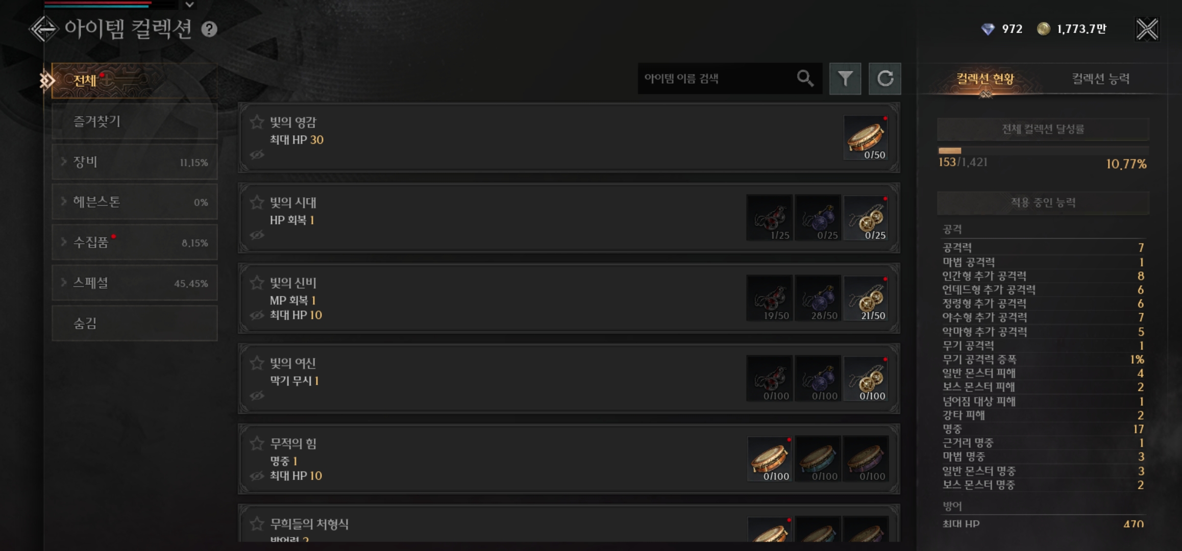 최근에는 매일 상점에서 파는 강화석을 구매해 모쪽이 아이템컬렉션을 해주고있음